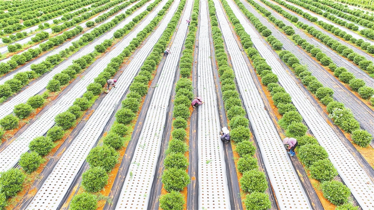 近年来,永丰县因地制宜套种黄栀子、粉防己等中药材,充分发挥土地产出效益,以绿色富民产业赋能乡村振兴。图为近日,该县佐龙乡捞塘村农民在黄栀子、粉防己中药材套种基地进行田间管护。通讯员 刘浩军摄