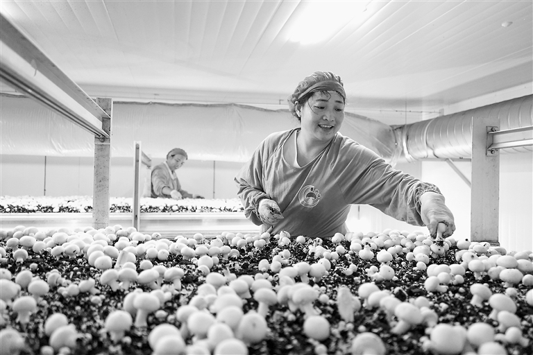 5月21日,位于新余市渝水区南安乡的新余蘑坊菌业有限公司,工人们正忙着采摘有机双孢菇,准备将产品销往广州、成都等地。