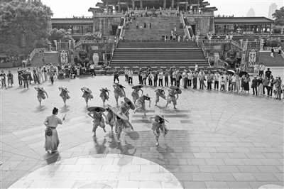 一次次躬身耕种、一笔笔精心书写……5月26日,舞剧《天工开物》部分主演和群舞现身滕王阁景区,向在场游客展示了该剧经典篇章《乃粒》中的精彩一幕。