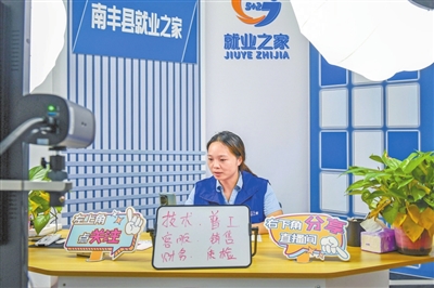 5月23日,南丰县工业园区就业之家的工作人员在直播间为求职者介绍岗位信息。通讯员 邓 鹏摄