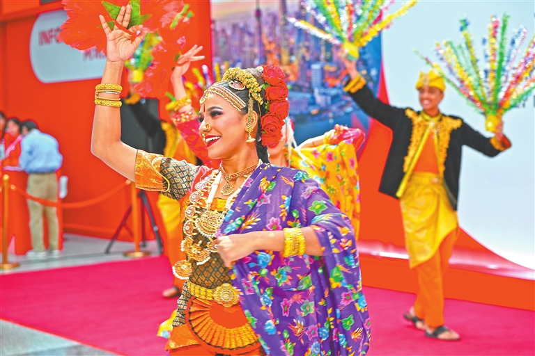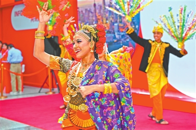 ▲马来西亚参展人员在展会现场为观众带来传统舞蹈表演。