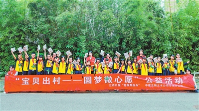 “豫章故郡,洪都新府。星分翼轸,地接衡庐……”5月27日9时30分,滕王阁下,江风徐徐,一群来自南昌市红谷滩区流湖中心小学的孩子在老师的带领下,齐声朗读《滕王阁序》。端午和“六一”将至,为关爱乡村儿童成长,帮助他们实现微心愿,本报《党报帮你办》栏目联合中建五局土木公司华东分公司开展“宝贝出村——圆梦微心愿”公益活动,通过城市体验、文化传承、爱心互动等环节,向22名孩子传递了特别的温暖。