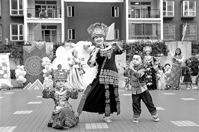 5月30日,贵州省都匀市凤凰幼儿园的孩子和家长参加民族服饰走秀。