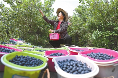 5月27日,靖安县仁首镇蓝莓基地,农户正在采摘蓝莓。通讯员 鲍赣生摄