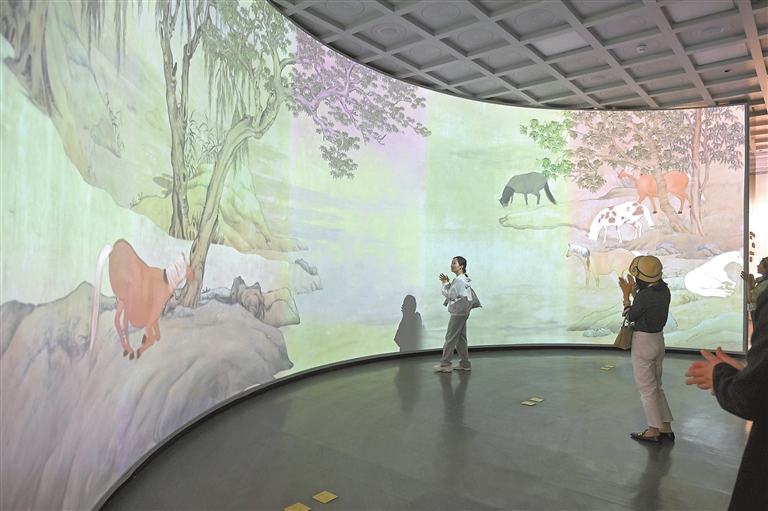 大高玄殿数字馆是故宫博物院第二座全数字形态的展厅,是一座集展览、研究、教育等功能于一体的多元化数字空间。此次举办的“腾跃古今——马文化数字艺术展”,聚焦于“马”的精神象征及其与人类社会的紧密联系,重点展示了故宫博物院院藏与马相关500余件超高清文物影像数据,借助沉浸式投影、三维互动、知识图谱等前沿技术手段,让这些难得一见的珍贵文化遗产“活起来”。