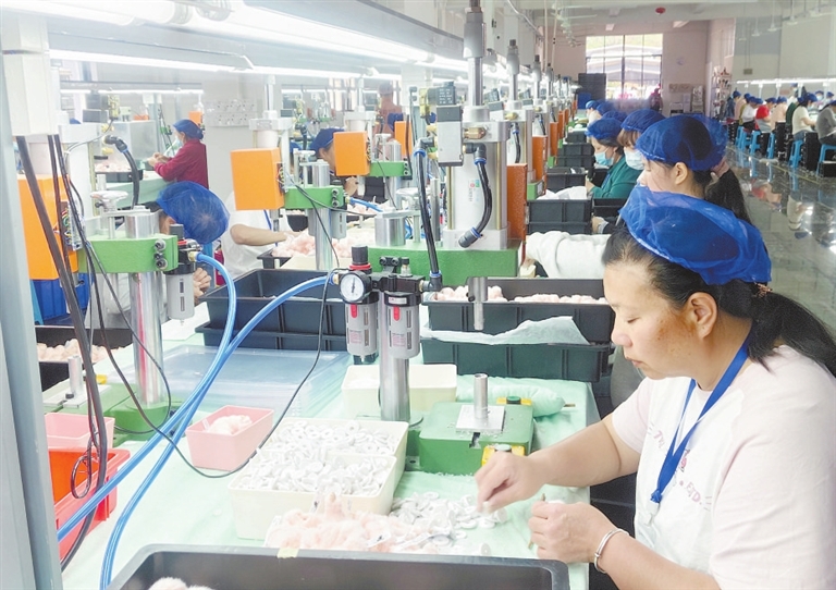 近年来,信丰县鼓励企业入村开办“微工厂”,帮助群众就近就地就业。图为5月26日,正平镇一家“微工厂”生产车间内,工人正在加工毛绒玩具。特约通讯员 李 健摄