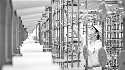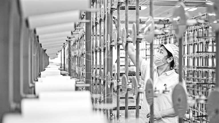 位于分宜县的江西金达泊洋麻纺织品有限公司,通过引入数字设备,实现超70%机械化生产,产品远销日本、韩国、欧美等海外市场。图为6月2日,工作人员正在整理纱线。
