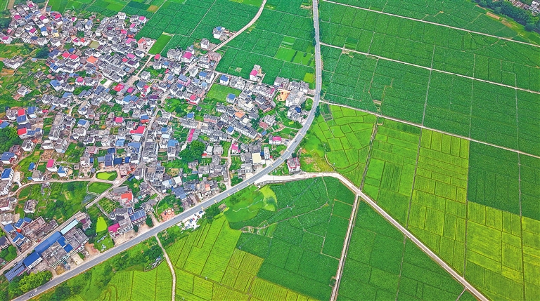 近日,赣县区韩坊镇梅街村,错落有致的民居与青山、梯田、道路等相映成趣,构成一幅美丽的生态田园画卷。通讯员 薛顺鑫摄