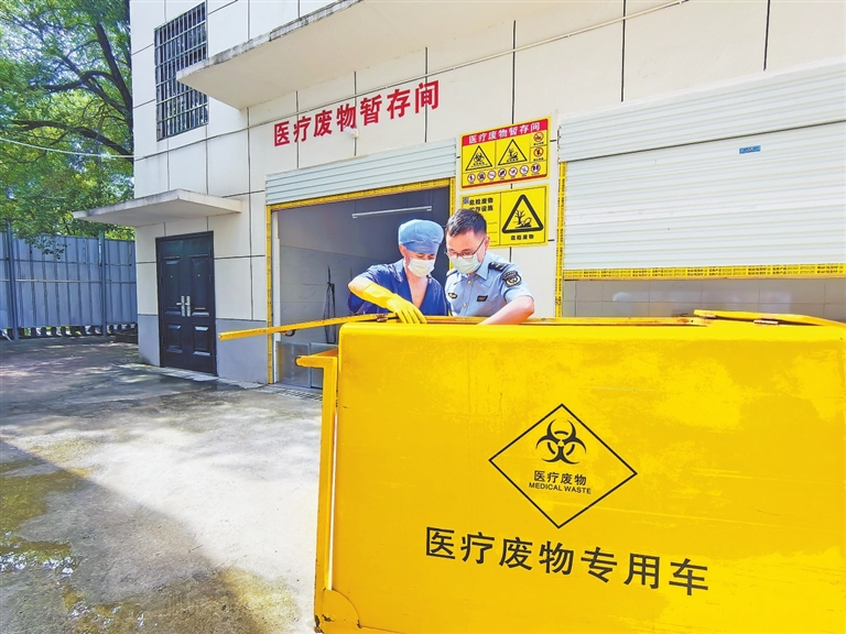 6月3日上午,陈德顺推着医疗废物专用车,在丰城市人民医院收集标有明显医疗废物警示标识的黄色垃圾袋,并按指定路线将其运送到医疗废物暂存间。作为该院医疗废物收集转运专职工作人员,陈德顺每天都要与各科室对接,将医疗废物计量称重,做好“双签字”,确保医疗废物日产日清。
