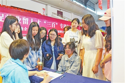 新余市深化校企地合作机制,搭建学校、企业、政府三方协同对接平台,努力提升高校毕业生就业质量。图为5月28日,“牵手校地企 合作赢未来”高校专场招聘会在新余学院举行,现场汇聚了45家本地企业,提供1096个岗位。