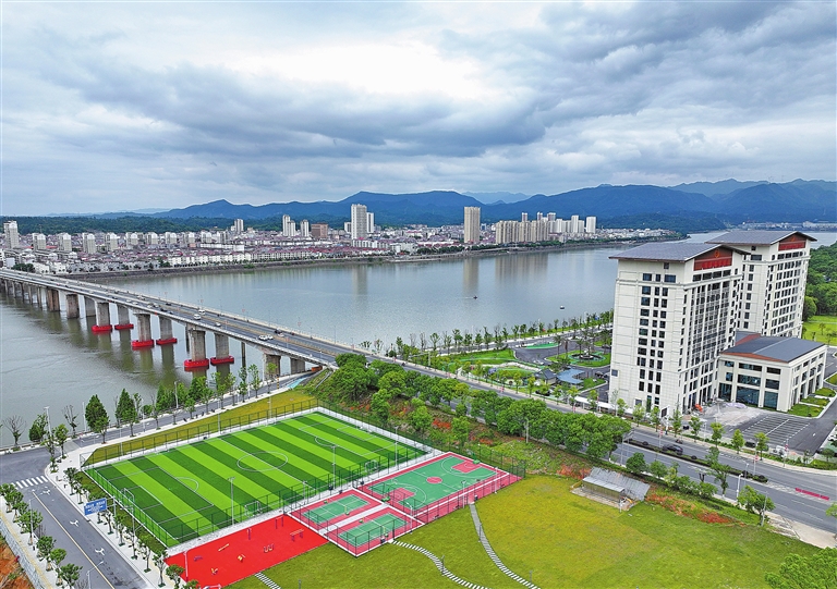 近年来,万安县以城市地块“微更新”提升基础设施和居住环境质量,将闲置地块打造成扮靓城市“金边银角”的口袋公园。图为5月30日拍摄的万安县楼富滩休闲体育公园。本报全媒体记者 吴文兵摄