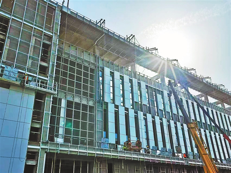 机械轰鸣声此起彼伏,车流往来穿梭。地面上,工人们忙于室外管网的铺设;半空中,施工人员正在进行建筑墙体的幕墙施工……仲夏时节,记者走进位于南昌高新区瑶湖西岸的瑶湖科学岛一期项目——南昌实验室项目建设现场,目睹了一片热火朝天的建设景象。这个总建筑面积约12.7万平方米的项目,从桩基施工到主体封顶仅用286天,较常规工期缩短了30%。而占地5.3平方公里的瑶湖科学岛,正以“三天一小变、半月一大变”的建设速度迅速崛起。