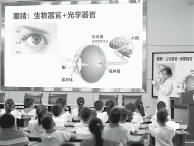6月5日,分宜县第一中心小学邀请县人民医院五官科医生来到学校开展爱眼日宣传活动,教学生科学用眼、劳逸结合,有效预防近视。特约通讯员 袁建兵摄