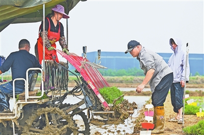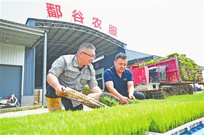 五月的赣鄱大地,连片稻田正舒展着初夏的绿意。位于南昌市新建区联圩镇的江西鄱谷农业科技有限公司内,来自台湾的刘家兴正带领团队调试新研发的秸秆基质板育秧生产线。经过特殊工艺处理的秸秆碎末,在自动化设备中压制成可降解的育秧板,这项绿色创新技术正悄然改变着传统育秧方式。