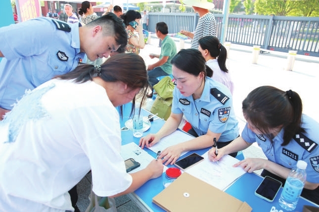 为保障2025年高考安全平稳有序,萍乡市公安局开发区分局提前部署、周密安排,全力筑牢高考安全防线。据了解,高考期间,该分局在萍乡中学翠湖校区考点设公安便民服务站,户政民警驻点现场为遗失证件考生办理临时身份证,共办理临时身份证26张。此外,服务站备有防暑药品、矿泉水、反诈扇等物资,提供服务的同时开展高考类反诈及防溺水宣传,为考生营造安全舒适的考试环境。王梦茜摄