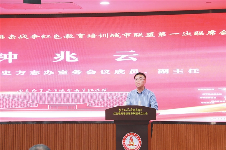 2021年,集中展现南方八省十五个游击区辉煌历史的南方红军三年游击战争纪念馆正式开馆,吸引了全国各地游客前来参观游览,接受红色精神洗礼。2022年,纪念南方红军三年游击战争胜利暨新四军组建85周年理论研讨会在此举办,汇聚各方智慧共话历史。今天,大余作为东道主,邀请南方八省各游击区城市代表召开这次联盟成立大会,吹响了传承弘扬南方红军三年游击战争革命精神的“集结号”。希望城市联盟在大家的共同努力下,进一步凝聚力量,深化对三年游击战争和新四军源头史料的挖掘整理和研究阐释,多出研究成果。发挥各游击区的主体作用和协同效应,跨区域举办形式多样的宣传教育活动,进一步扩大“南方红军三年游击战争”红色教育培训品牌的影响力,以红色教育培训事业高质量发展助推革命老区经济社会高质量发展。