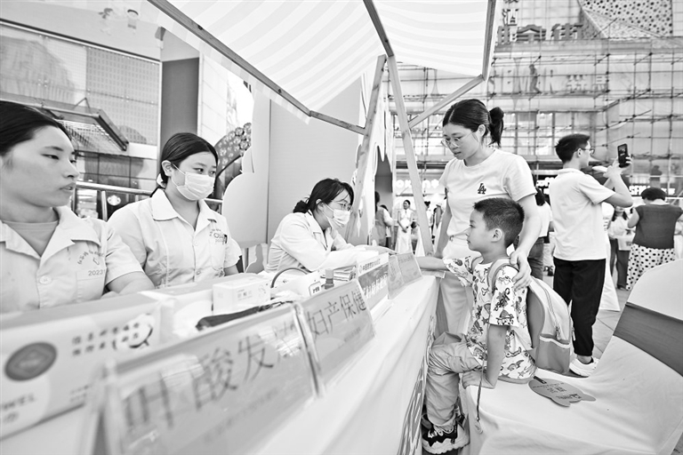南昌市将托育工作连续三年列入政府民生实事项目,加快推动生育友好型社会建设。图为6月13日,市民在红谷滩区万达广场的“托育集市”咨询托育服务。本报全媒体记者 王蕴蓉摄