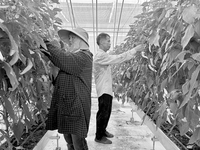 位于贵溪市的江西溪望田野生态农业有限公司特色果蔬基地,水果辣椒进入丰收期。图为6月11日,工作人员正在采摘水果辣椒。胡 齐摄