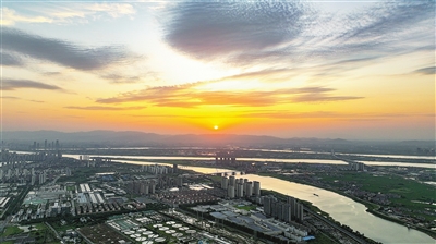 6月16日傍晚,南昌市的天空出现绚丽晚霞,为夏日的黄昏增添一抹浪漫色彩。