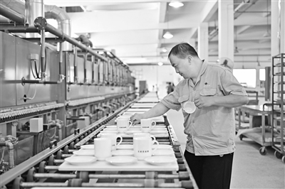 6月16日,景德镇红叶陶瓷股份有限公司生产车间,工人正在智能生产线上赶制订单,满足国内外市场需求。本报全媒体记者 王蕴蓉摄