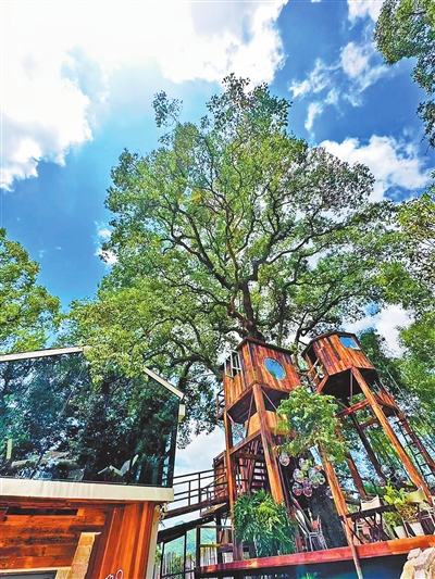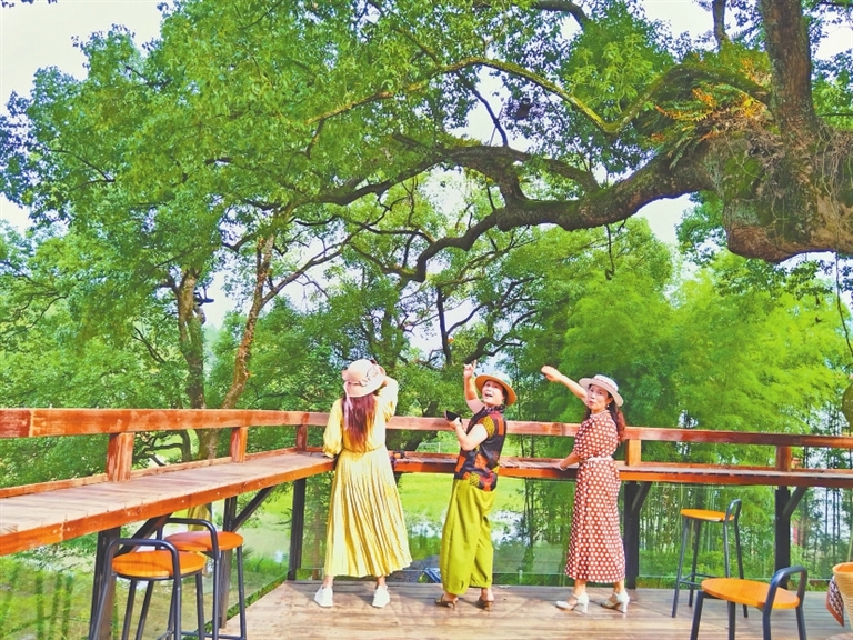 “坐在古樟下面,品品咖啡,发发呆,这慢生活太悠闲了!”专门从新余市区开车1小时来此“打卡”的何先生一脸惬意。