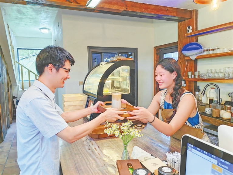 2004年出生的刘静怡是一名即将毕业的大学生,拥有一家属于自己的村咖,是她一直以来的梦想。一个偶然机会,她发现梅花村集古树、老屋于一体,且交通便利,于是在两棵古樟旁打造了这家木屋村咖。今年“五一”假期,“远椿咖啡”试营业,每天客人络绎不绝。