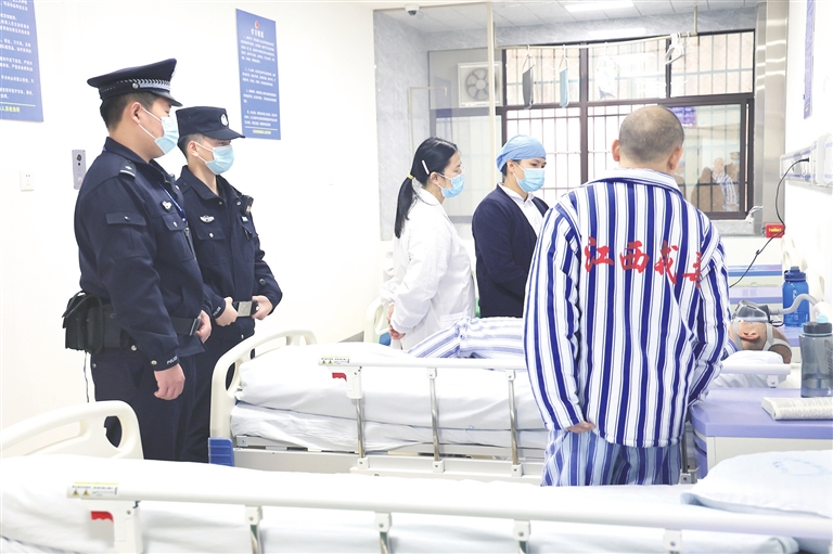近年来,江西省病残戒毒人员收治所(江西省病残吸毒人员收治中心)创新“医疗嵌入监管”模式,与省胸科医院深度合作,创立“所内医院”——每天2名医生、7名护士24小时驻所巡诊,对艾滋病、肺结核等传染性疾病患者实行“诊疗、服药、监测”闭环管理。通过“警医联席会”“跟班查房”等机制,民警与医护人员每日研判病情,实现疾病“早发现、早处置、早治疗”,有效破解病残吸毒人员疾病诊治难题,破解收戒工作难点、堵点。袁 征摄