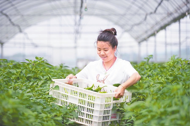 6月20日,芦溪县新泉乡的辣椒种植基地迎来丰收,亩产超2000公斤、产值1万多元。本报全媒体记者 刘启红摄