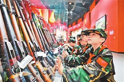 近日,南昌县洪州学校的学生们在南昌军事主题公园轻武器馆内参观。 本报全媒体记者王蕴蓉摄