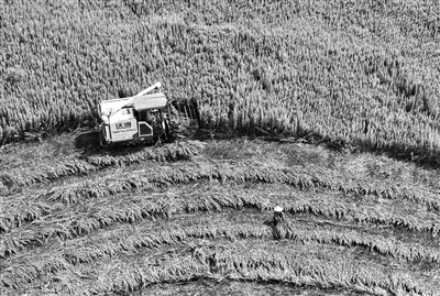 6月20日,南丰县洽湾镇黄家村艾草种植基地,农民驾驶农机收割艾草。通讯员 谢 东摄