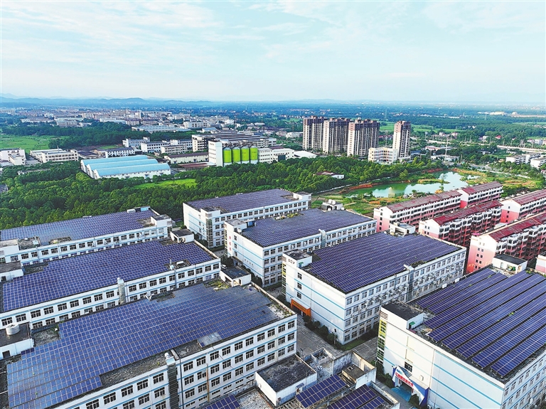 近日,泰和高新技术产业园,厂房屋顶光伏板整齐划一,将太阳能转化为绿色电能,助力经济发展。特约通讯员 邓和平摄