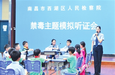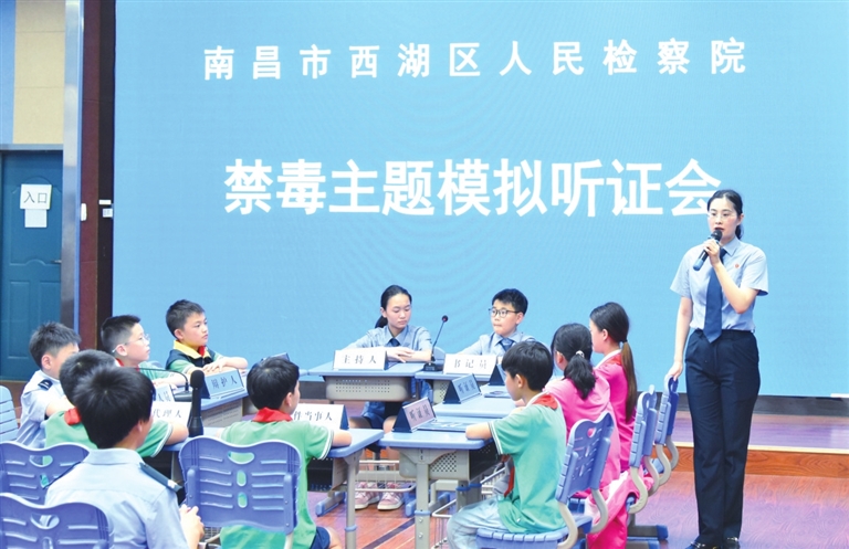 在“6·26”国际禁毒日到来之际,南昌市西湖区人民检察院联合多家单位共同走进南昌市站前路小学云飞路校区,通过“沉浸式体验+案例教学+互动参与”等模式,开展一场别开生面的法治副校长进校园禁毒宣传教育活动。