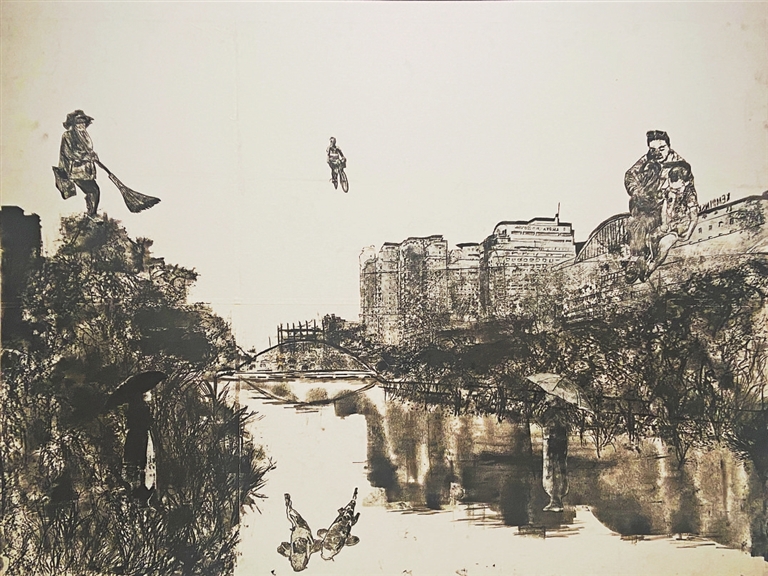 《梦之风景系列》(下左图),是艺术家费德里克·阿尔诺在北京生活的内心情感的反映。他在宣纸上运用素描手法进行创作,画面纯粹且富有厚度。这件作品,正是艺术家笔下两国文化和谐交融的见证。