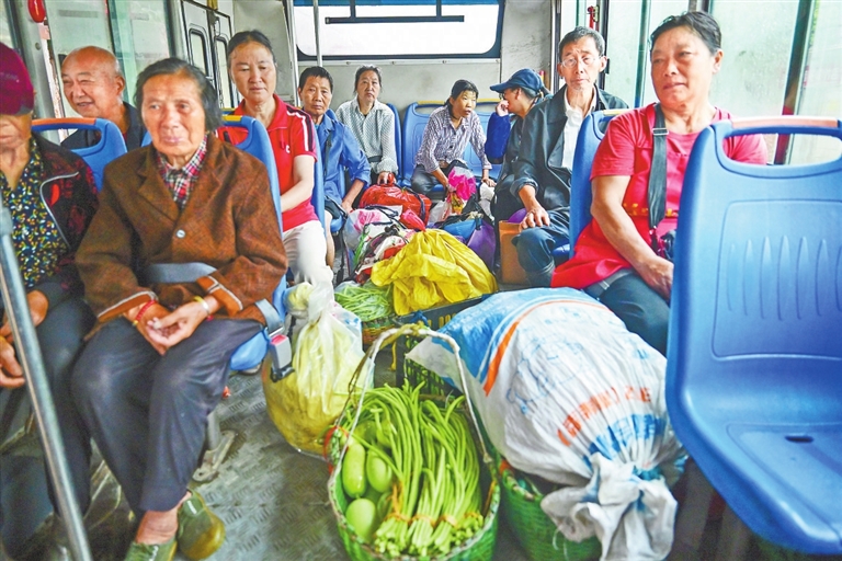 “以前的公交车空间小、车次少,单程价格就要8元,现在的车空间大、坐得舒服,发车时间早,适合我们去卖菜,而且票价只要1元,一年能为我们节省3000多元。”七琴镇七琴村75岁的菜农谢逢广说。“请大家系好安全带!”5时30分,在做完各项检查后,司机邓国平准时发车。车辆途经潭丘、神政桥等乡镇站点,到达县城农贸市场后,菜农们争先恐后地挑着各自的蔬菜,前往定点摊位。
