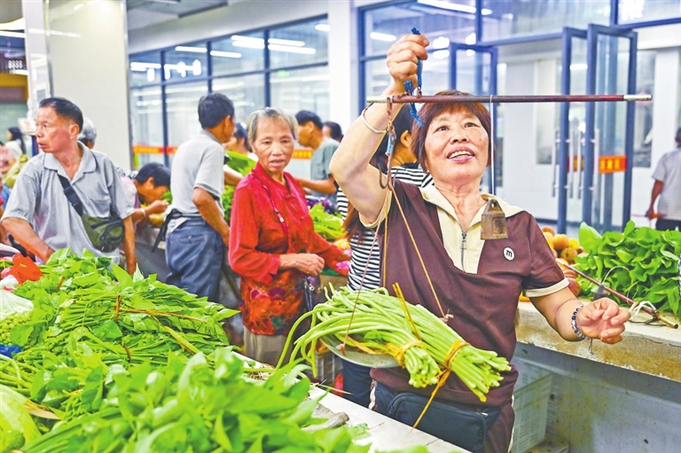 要让菜农的农产品运得出来,也要卖得出去。2022年,新干县农贸市场升级改造后,在二楼专门设置了80个免费摊位,供菜农使用。宽敞的新能源公交降低了农产品损耗率,加上运输成本的降低和摊位的免费使用,菜农收入得到明显提高。对于山里的村民而言,“菜农公交”不仅增加了他们的收入,还提升了他们的生活品质。“卖完菜还能顺便在县城逛逛,买些生活用品带回家。”七琴镇金联村74岁的菜农刘长英笑着说。