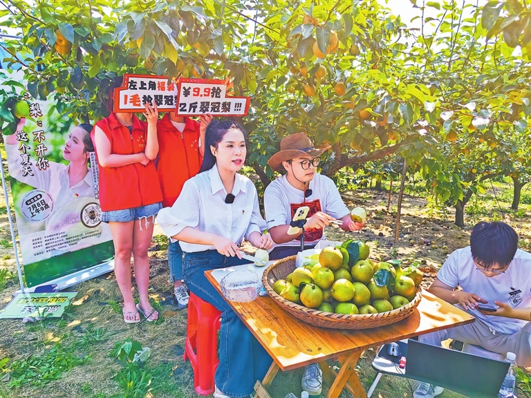 黄嘉慧还把精力投入果农帮扶上。村民熊志明承包了100多亩山地种翠冠梨,以本地经销商收购为主。这两年,每到梨子丰收的季节,熊志明的果园里就会看到黄嘉慧的身影。“黄书记现场帮我直播,她有文化、形象和口才好,让我的梨卖到全国各地,去年收入50多万元。”熊志明说。
