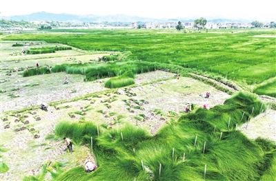 近日,在宁都县田头镇边斜村千亩席草种植基地里,村民在收割席草,呈现出一派忙碌丰收的景象。近年来,宁都县通过“公司+基地+农户”等模式,积极引导村民发展席草产业,形成席草种植、加工、销售于一体的产业链,助力农户增收致富。曾嵘峰摄