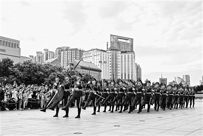 7月1日,南昌八一广场举行了升国旗仪式,来自全国各地的游客齐聚一堂,高唱国歌,祝福伟大祖国。