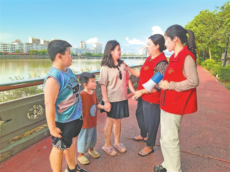6月30日,奉新县华林社区在重点水域路段、特殊时间点,组织社区工作者、网格员和志愿者不间断巡河,对过往的青少年进行防溺水宣传劝导。通讯员 陈彩霞摄
