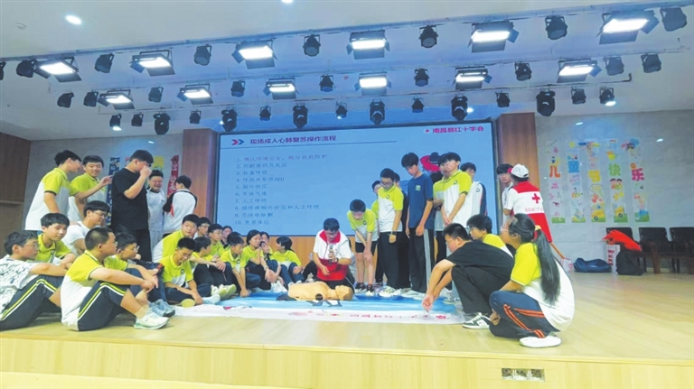 近日,南昌县莲塘街道联合县公安局、县教体局和县红十字会等部门和单位,集中开展防溺水安全知识宣传教育活动。活动通过集中宣誓签名、民警授课以及专业培训等方式,引导学生强化自我保护意识,进一步增强师生应急处置能力,筑牢防溺水安全防线,为学生撑起“生命保护伞”。吴 超摄