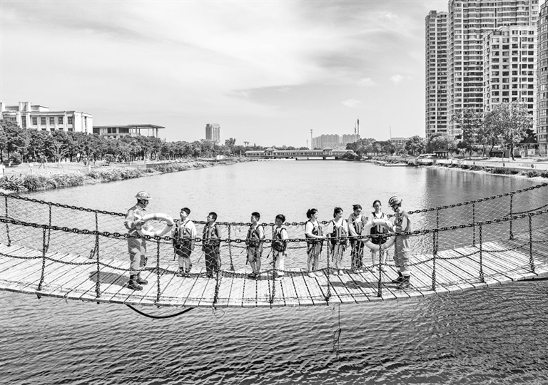 图③为7月2日,在江苏省兴化市昭阳湖公园,兴化市消防救援大队消防员指导学生学习防溺水自救互救的基本知识与技能。 新华社发(周社根摄)
