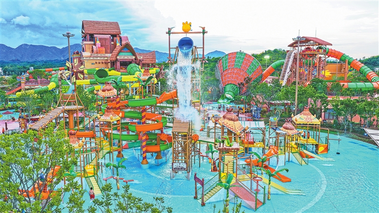 赣州方特水上乐园将于7月5日正式开园迎客。据悉,该园由赣州旅投集团和华强方特集团共同打造,紧邻赣州方特东方欲晓,占地面积超110亩,总投资达6.25亿元。这是一座集水上娱乐、休闲度假、餐饮购物于一体的大型合家欢水上主题乐园。通讯员 钟裕民摄