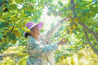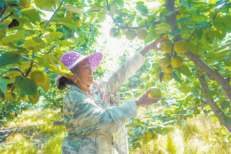 7月3日,新余高新区水西镇桥口村,150亩翠冠梨迎来丰收,果农正在采收。本报全媒体记者 邹宇波摄