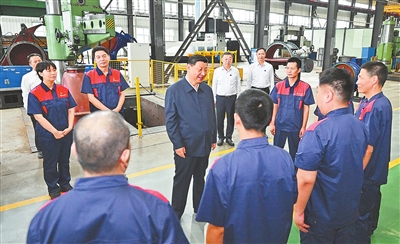 7月7日至8日,中共中央总书记、国家主席、中央军委主席习近平在山西考察。这是7日下午,习近平在阳泉阀门股份有限公司考察时,同企业员工亲切交流。新华社记者 燕 雁摄