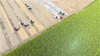 ▲7月3日,吉安市吉州区樟山镇东陂村,农民正在高标准农田进行晚稻育秧。特约通讯员 李 军摄