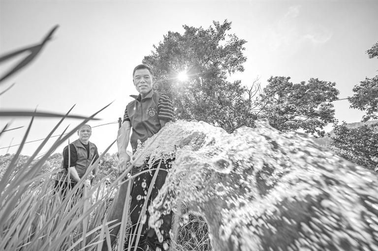 7月4日,南丰县太源乡墩里上村,志愿者正在抽水灌溉稻田。通讯员 谢 东摄