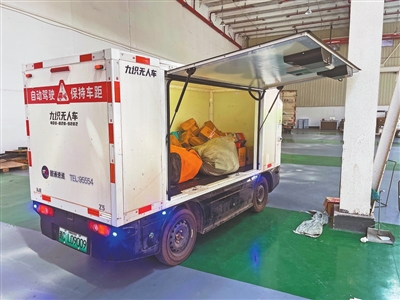 在华南城圆通快递网点,工作人员指着充电区的“智慧方盒”介绍,相比传统的三轮车,无人车充好电能跑一天。谈及运行安全,工作人员透露:“除了有一次驶出园区时蹭了道闸,其他无人车未发生过事故。”她还肯定了快递无人车的价值:“多拉又能跑,确实给企业降低了不少成本。”