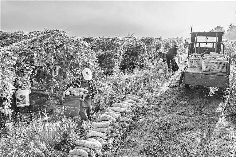 ▲眼下,萍乡市湘东区麻山镇的苦瓜种植基地进入采收旺季,农户们忙着采摘、分拣,田间地头一派丰收图景。通讯员 邓海萍摄
