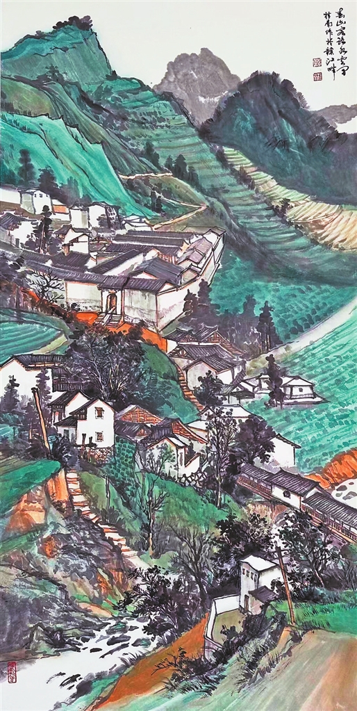 | 国画 《春山客路水云间》(深入生活 扎根人民——赣粤书画名家作品展;全南县文化馆;6月至7月) 陈桂南绘 |
