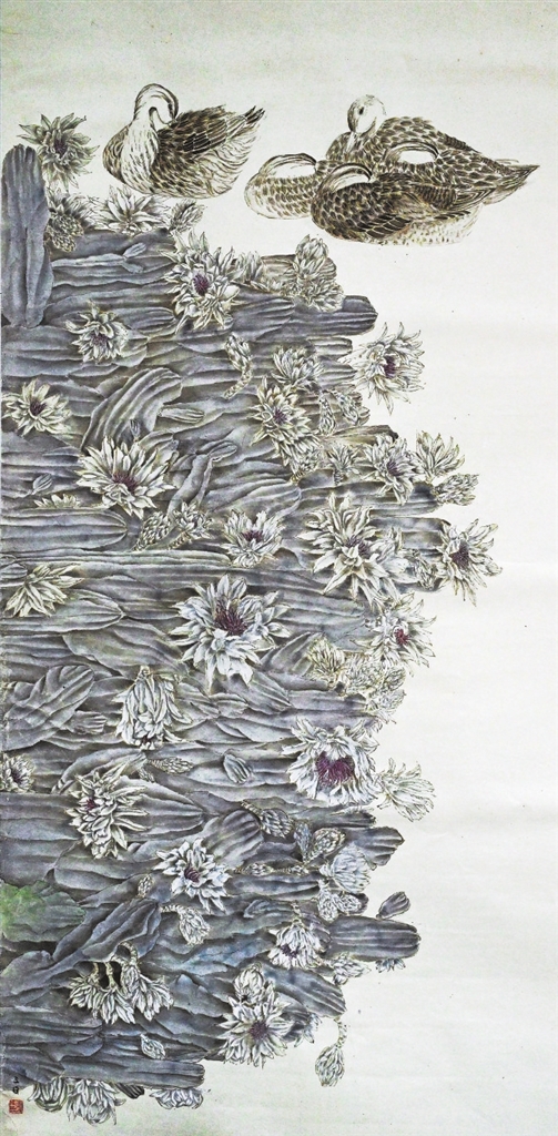 | 国画 《夏日》(心源·新象——赣州市美术家协会第五届国画艺术委员会委员作品展;赣州美术馆;6月) 罗 晶绘 |